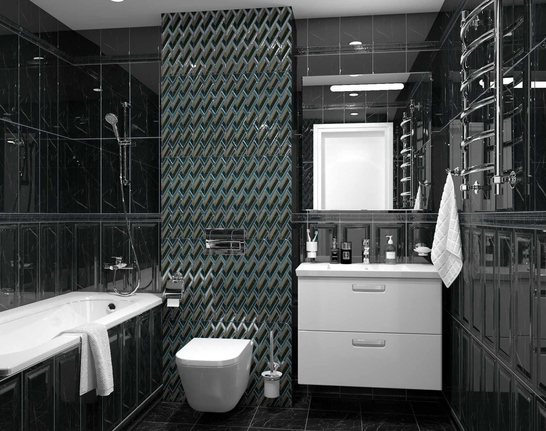 Алькала Декор черный мозаичный MM7204 20х50