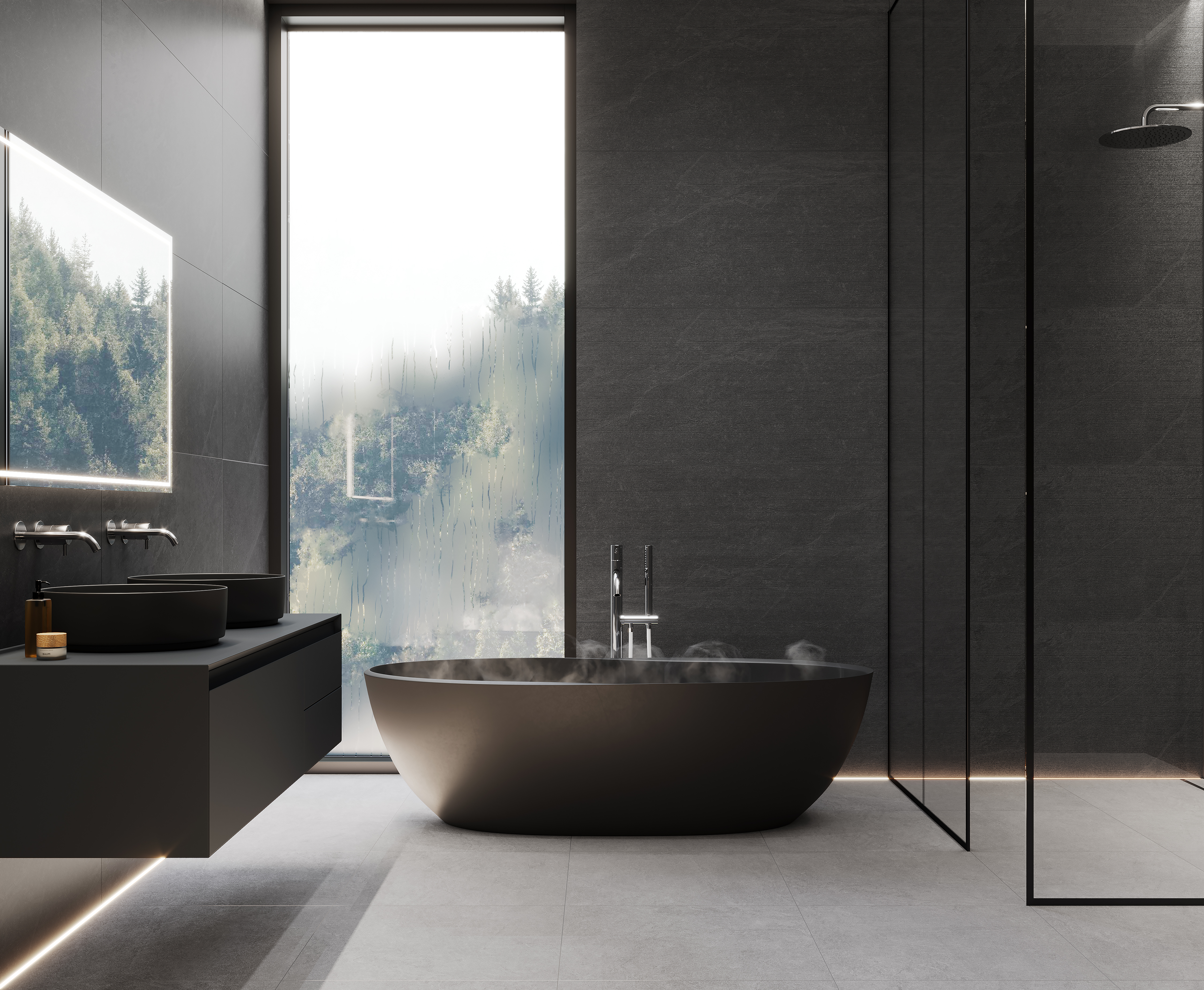 Бэдрок Шэдоу ПРО Деко Лайнс Керамогранит графитовый 60х120 матовый микроструктурный R10/A Бархат КР
