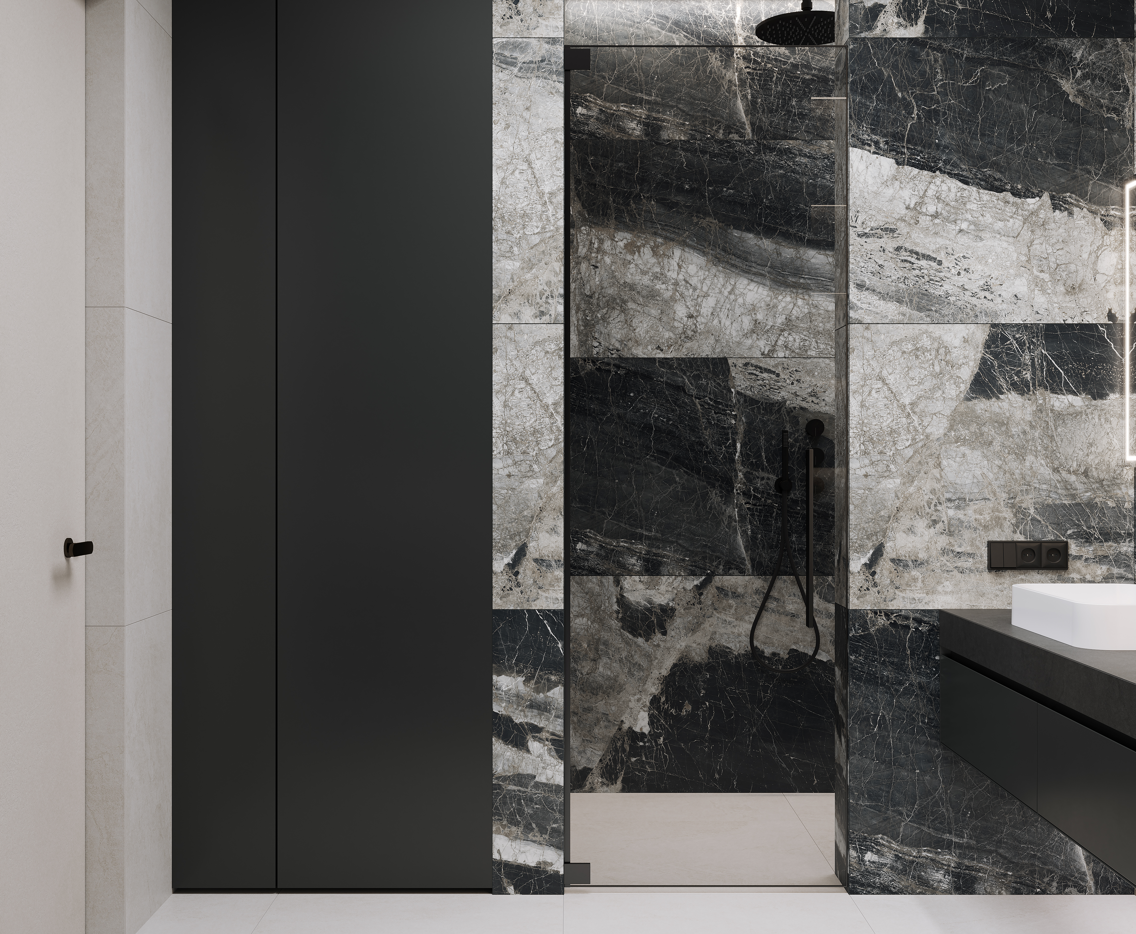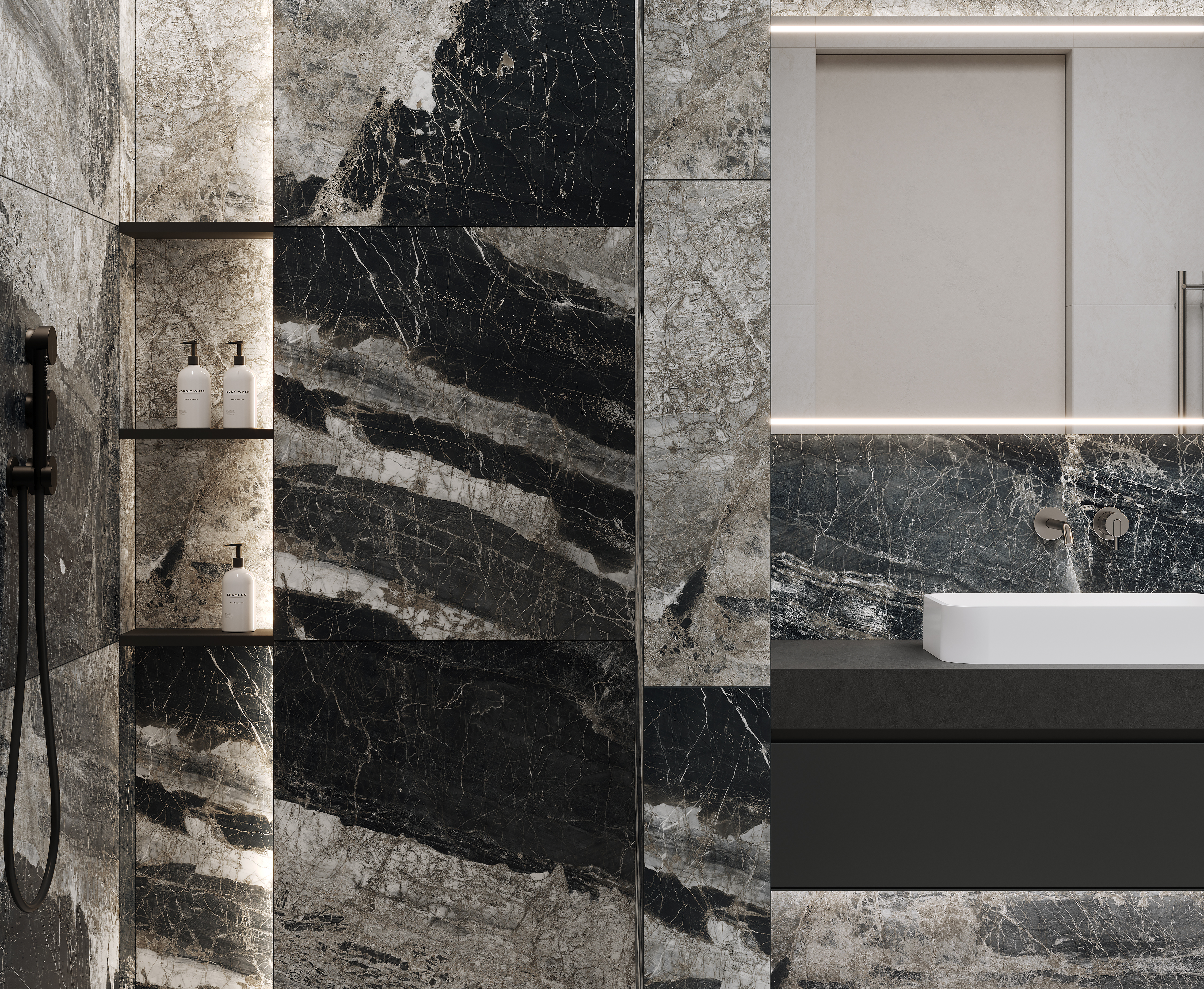 Лунар Неро Керамогранит графитовый 80х160 матовый+гл.чернила