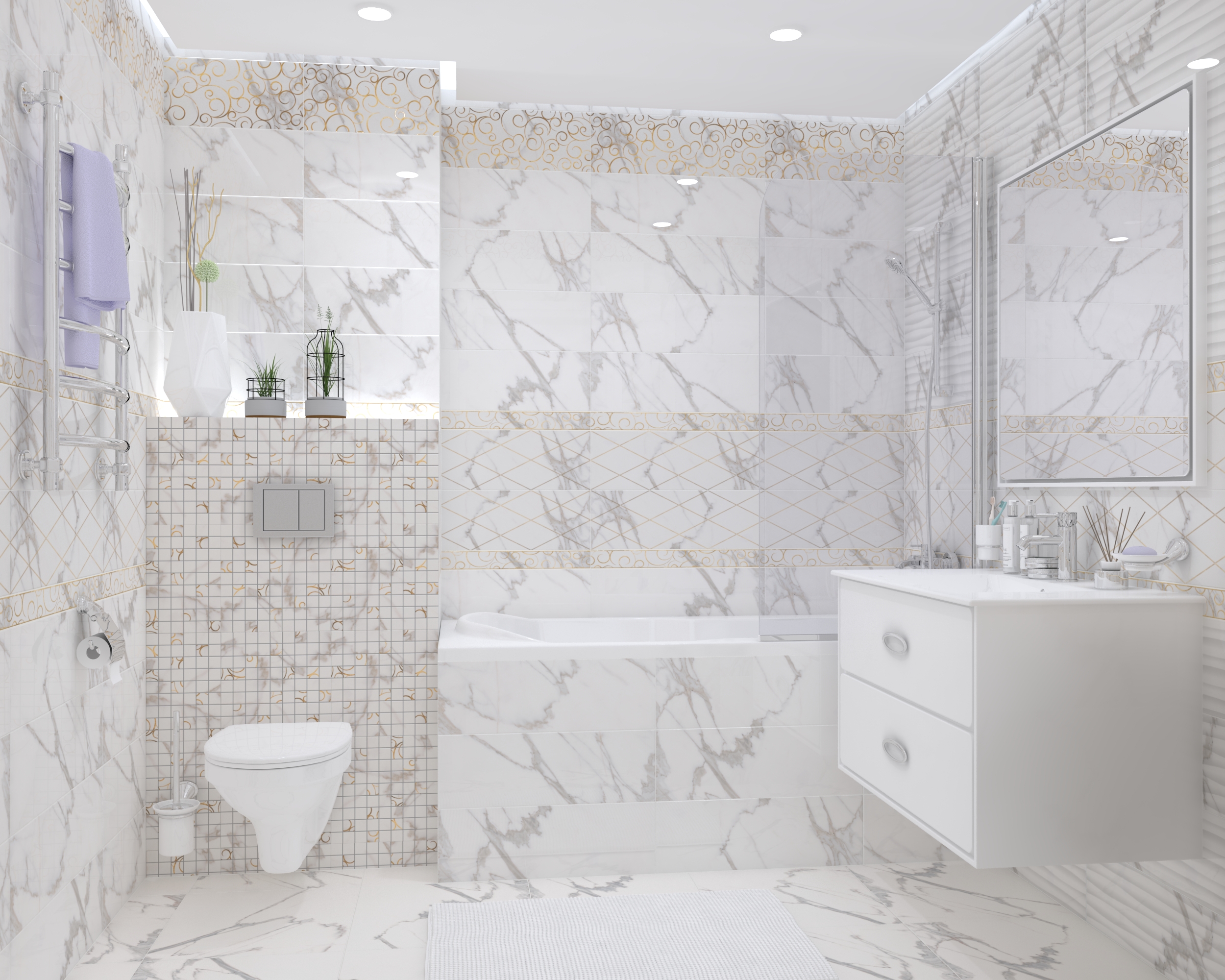 Миланезе дизайн Бордюр Римский каррара 1506-0420 3,6х60